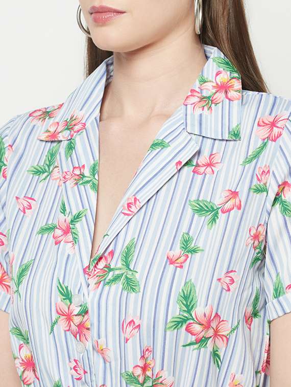 - » shirt collar striped jumpsuit