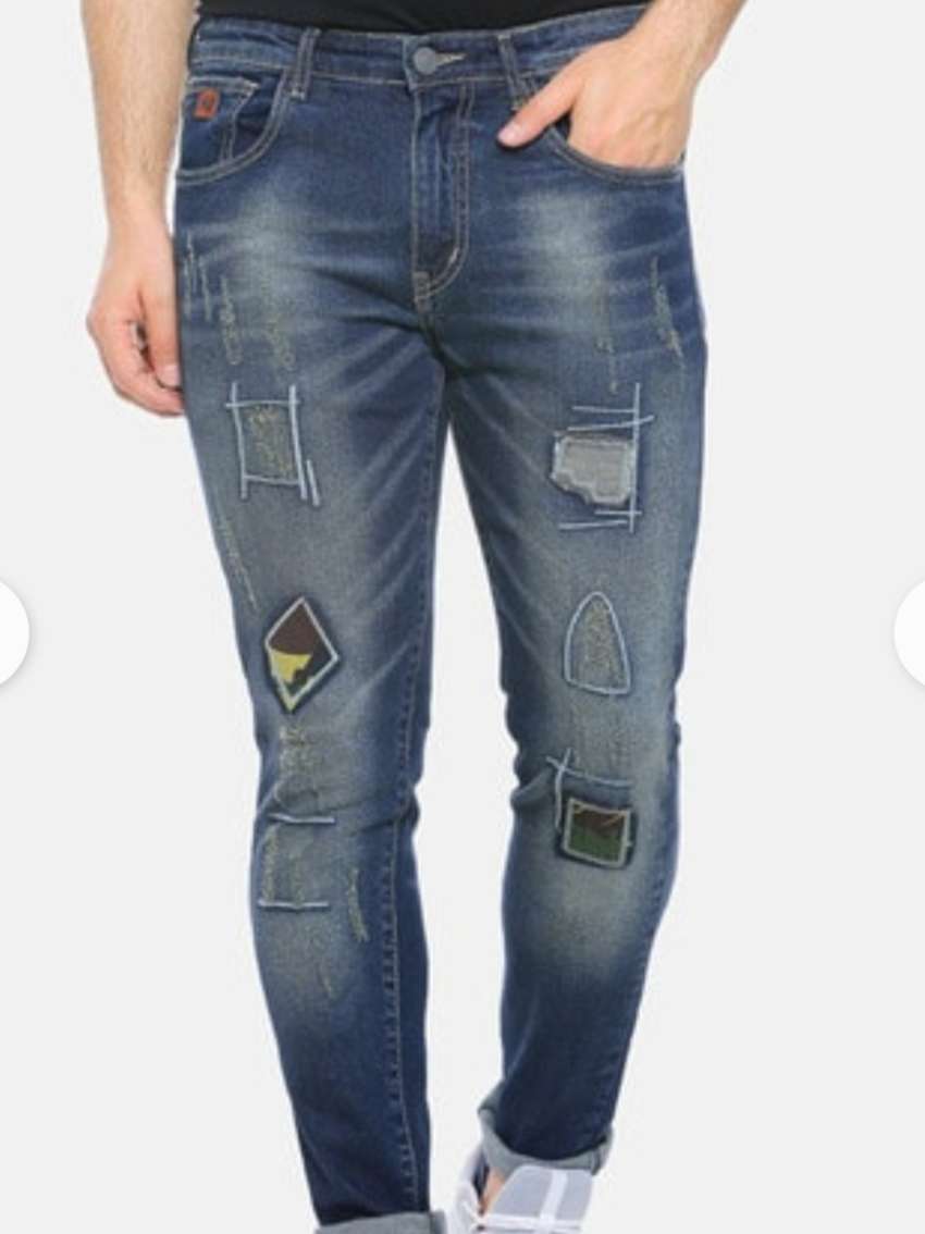 men denim rough jeans blue color
