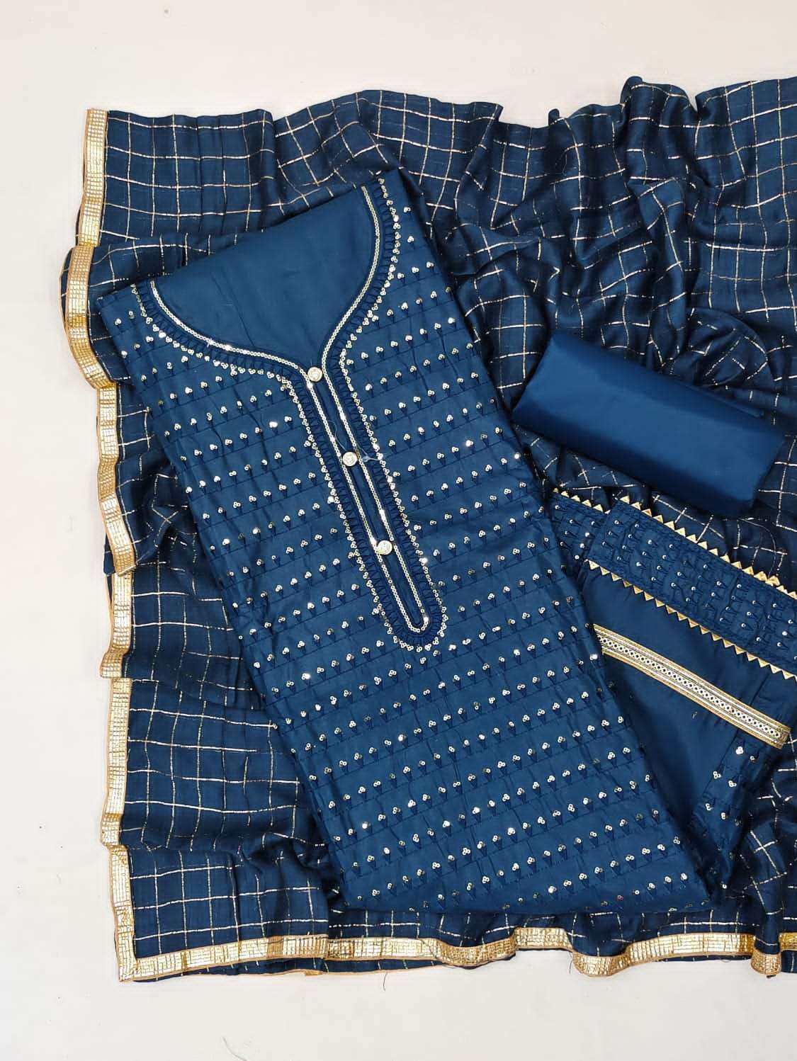 - Look ultra gorgeous in unstitched suits from Naresh impex and grab these beautiful suits in blue colour.