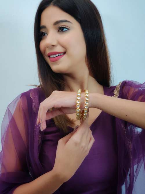 gold plated kundan bangles  - 17476802 - Very Small Image - 1