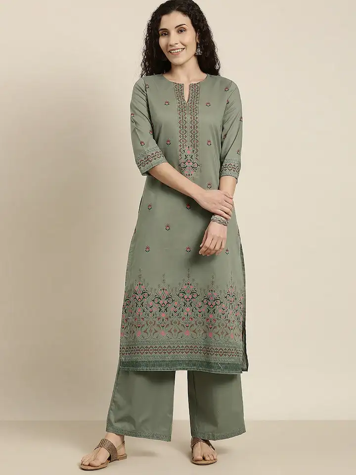 vishudh women green ethnic motifs printed