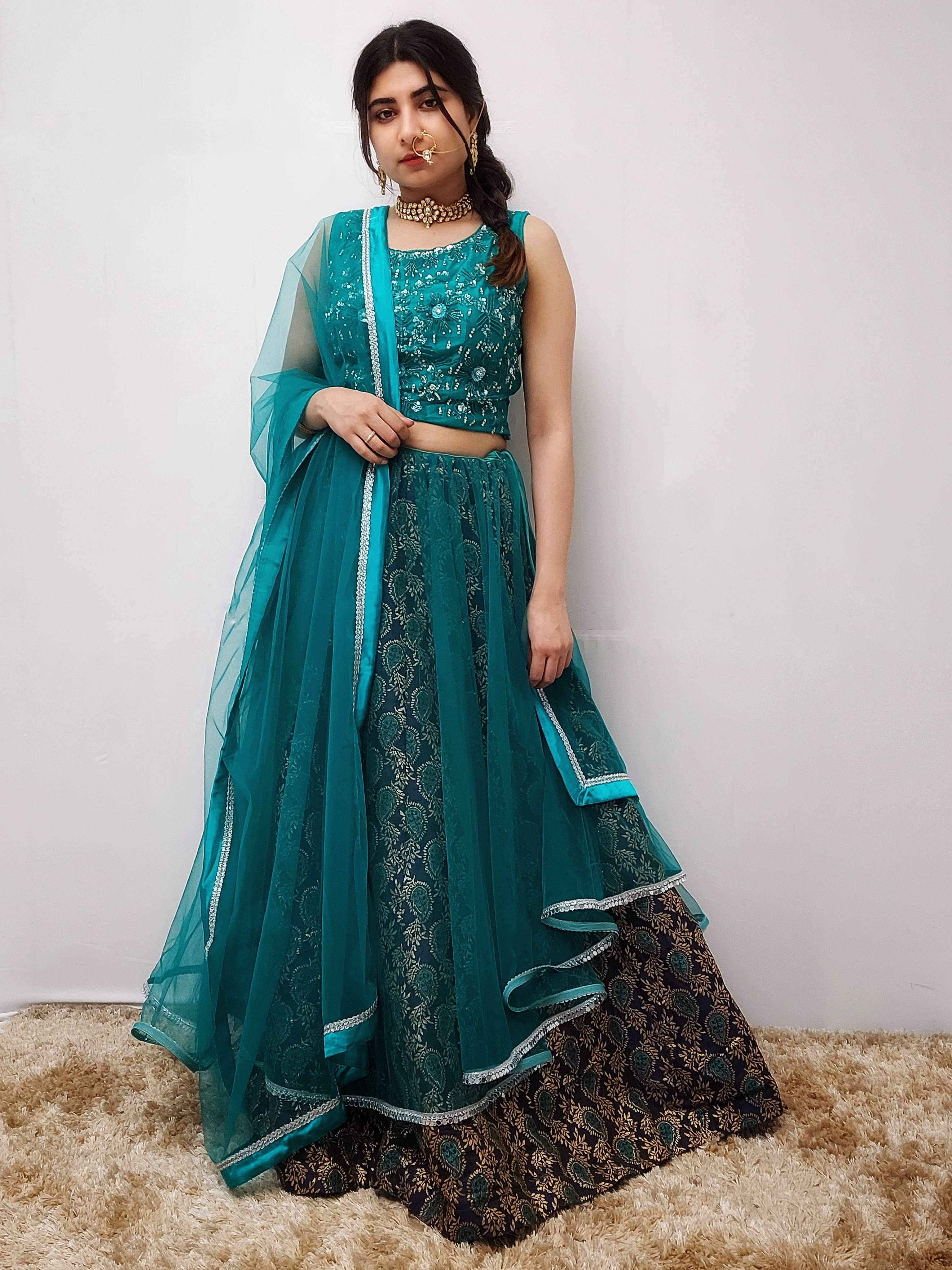 green party wear lehenga set  - 17573283 - Very Small Image - 1
