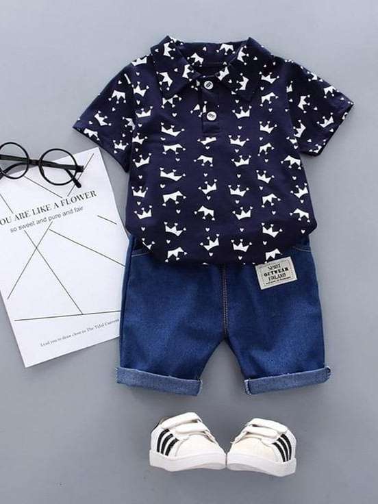 - » navy blue printed shorts & shirt set