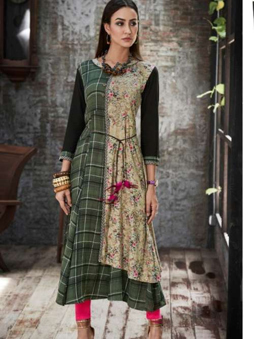 multi color rayon fabric fancy kurti  - 18020763 - Very Small Image - 1