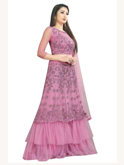- » arvika nylon net dark pink embroidered