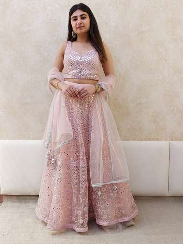 - » pink mirror work lehenga set
