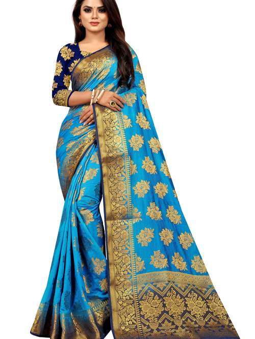 - » women's self design turquoise colored saree