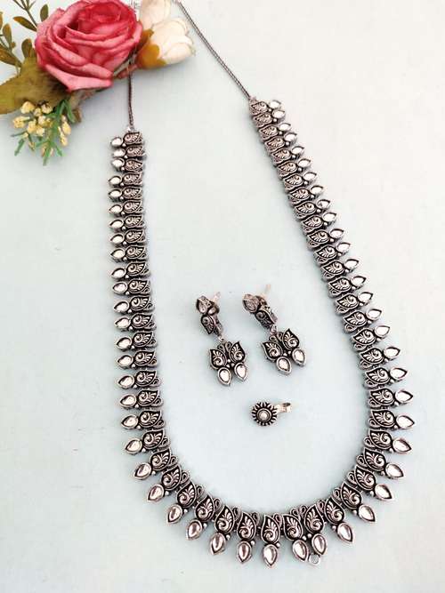 necklace long stone set, combo oxidised