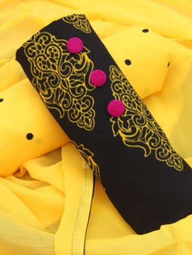 - Find versatile complete set of semi-stitched suits in trending designs in yellow colors suitable for a number occasions.