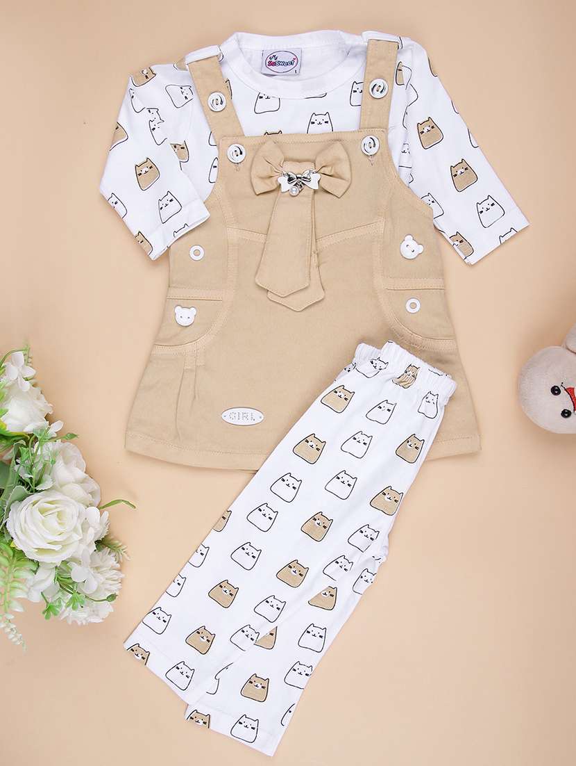 - Browse through the huge collection of casual wear twin sets and jump suits for girls in beige colors and designs to make your young lady look the fashionista that she is.