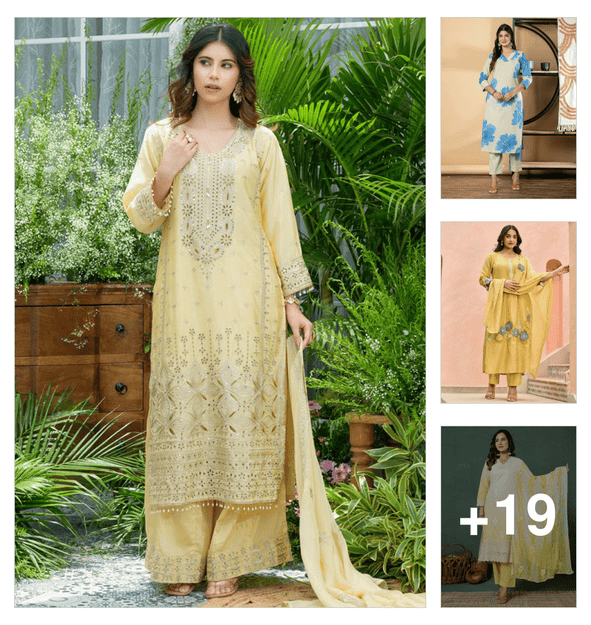 globus women black scalloped hem bell sleeves floral embroidered kurta & straight pant festive set