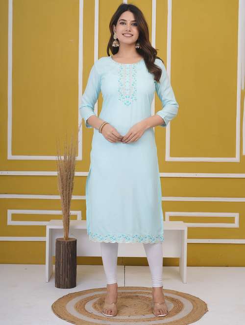 women embroidered three quarter sleeve straight kurta - 21785098 - Very Small Image - 1