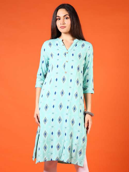 - Grab this beautiful kurta made up of rayon fabric featuring mandarin collar neck designs.