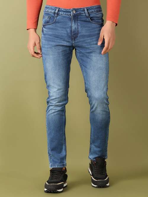 men mid rise slim fit plain jeans
