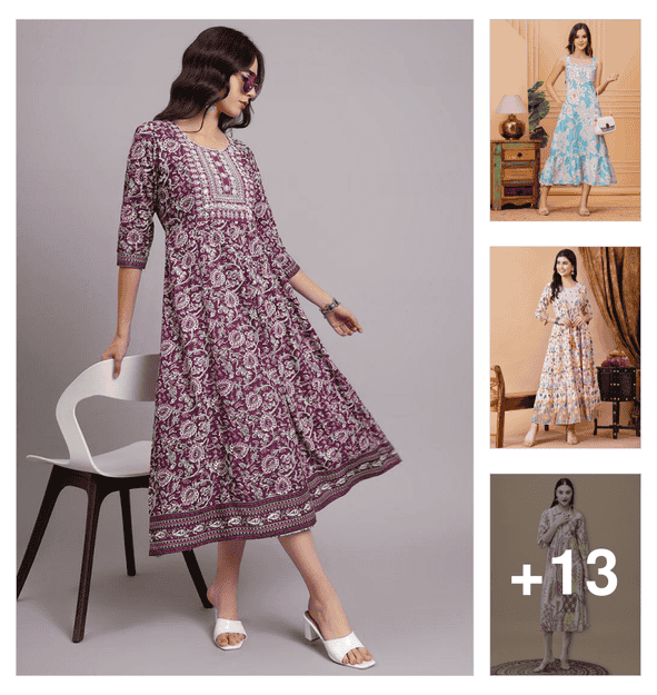 women floral printed three quarter sleeve ethnic dress