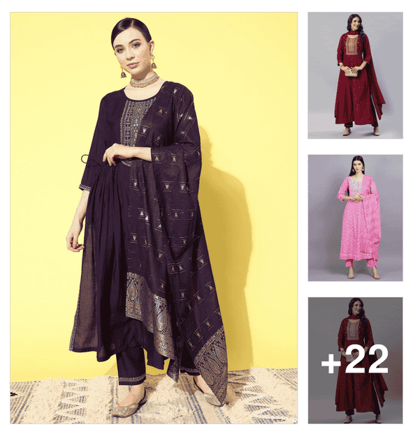 anouk purple kurta sets