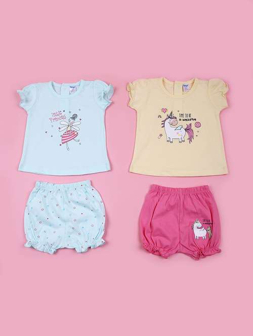 girls pack of 2 printed t-shirt & bloomer twin set