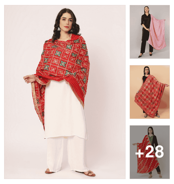red leheriya print dupatta