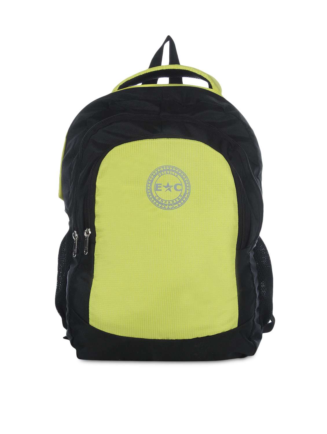 black and lemon green zippered backpack