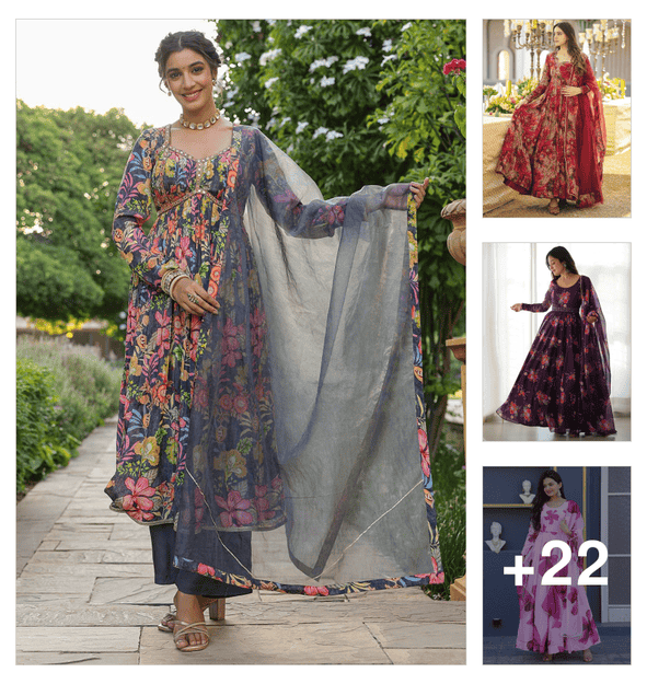 globus women maroon embroidered v-neck allover gold foil printed anarkali kurta with narrow pants festive set