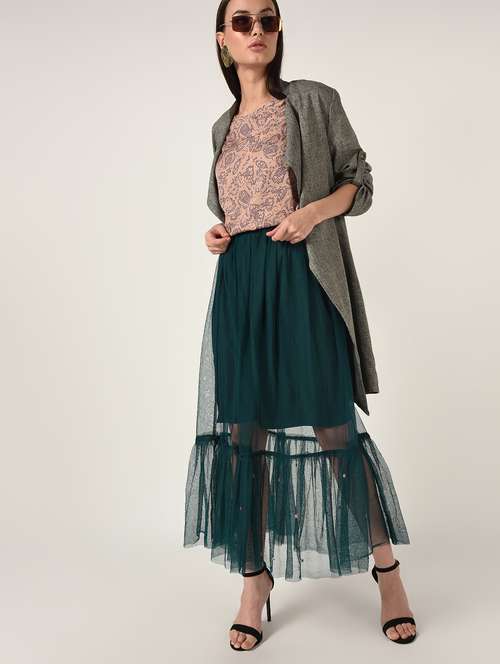 round neck bell sleeved abstract top - 16667966 - Very Small Image - 1