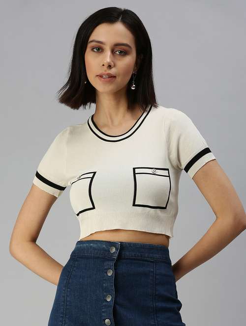 - Opt for this top made up of acrylic material and get it in a varied neck design.