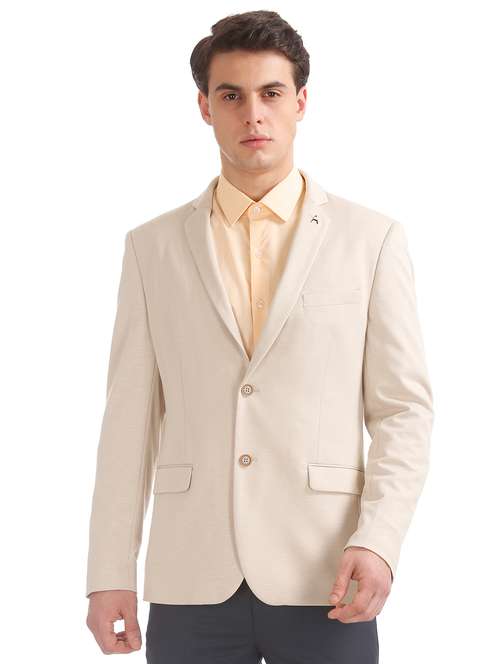 beige solid single breasted casual blazer