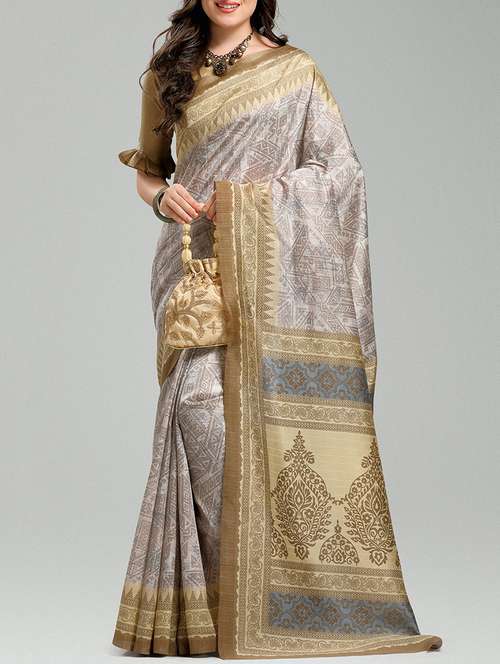 - » contrast pallu geometrical bhagalpuri saree with blouse