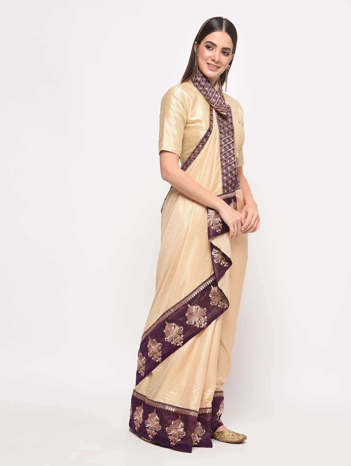contrast embroidered border saree