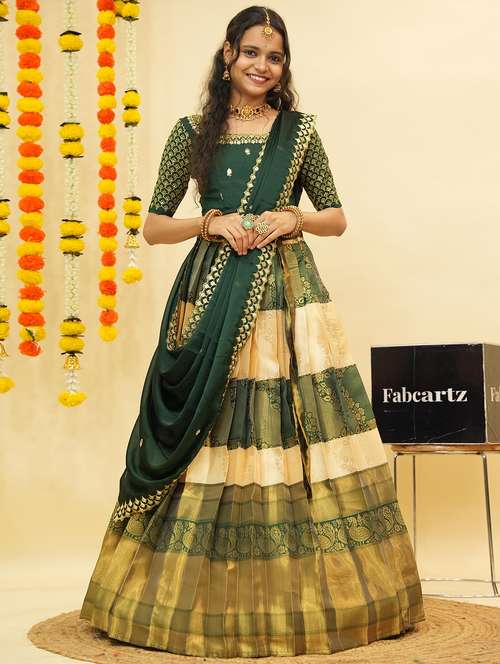 women self design south indian style unstitched lehenga choli - 22240822 - Very Small Image - 1