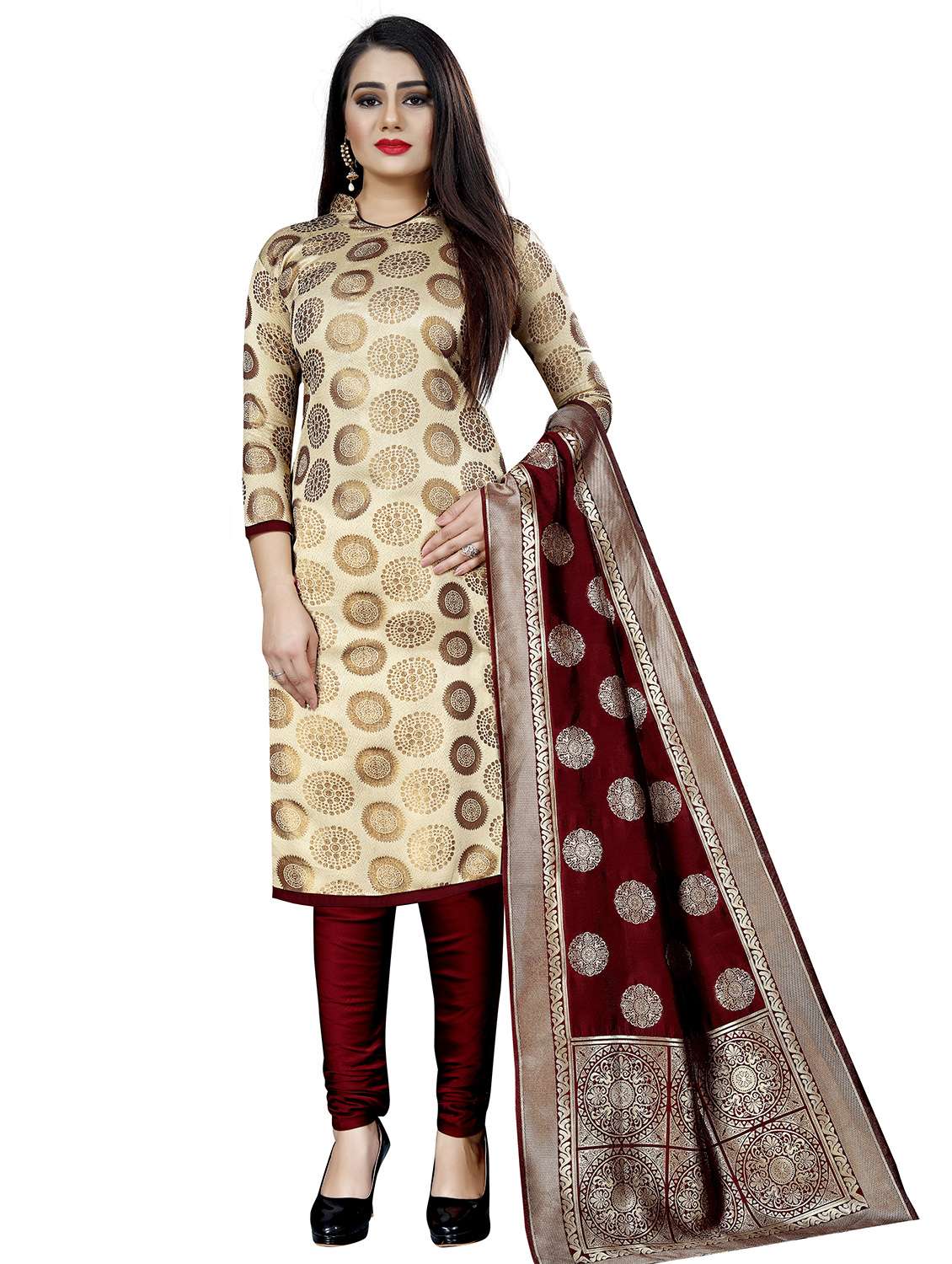 - Look ultra gorgeous in unstitched suits from MANIKARNIKA SAREES and grab these beautiful suits in cream colour.
