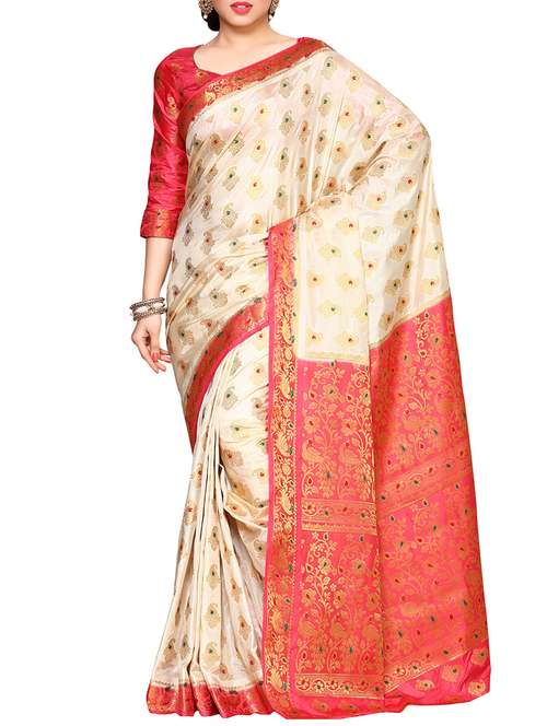 women's self design cream colored saree