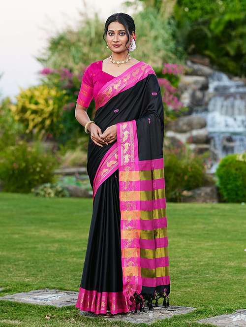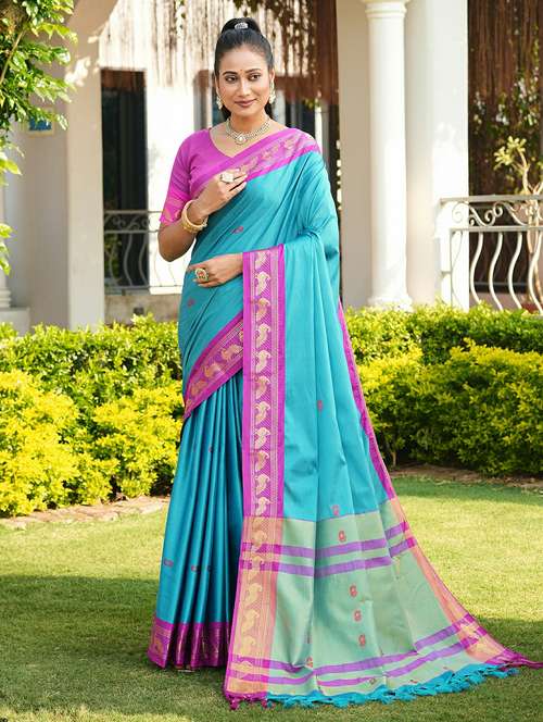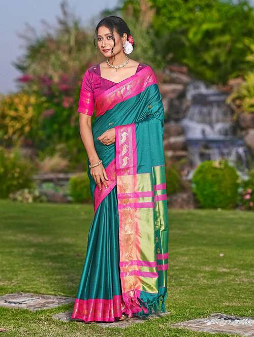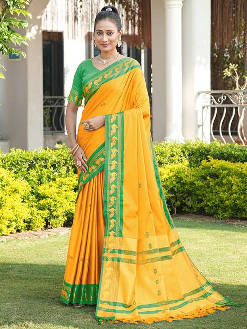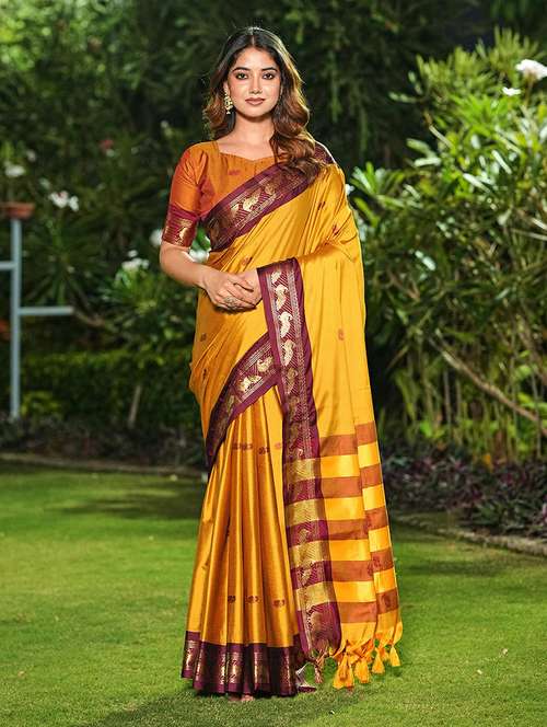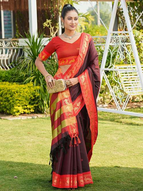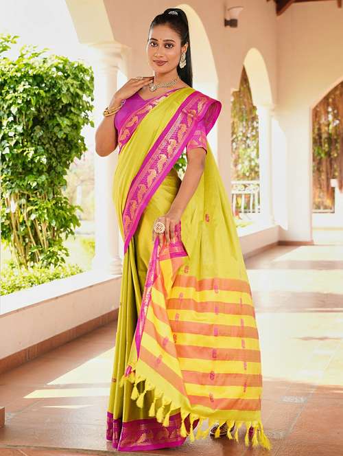 Chiku Aura Silk Saree With Peacock Zari Woven Motifs