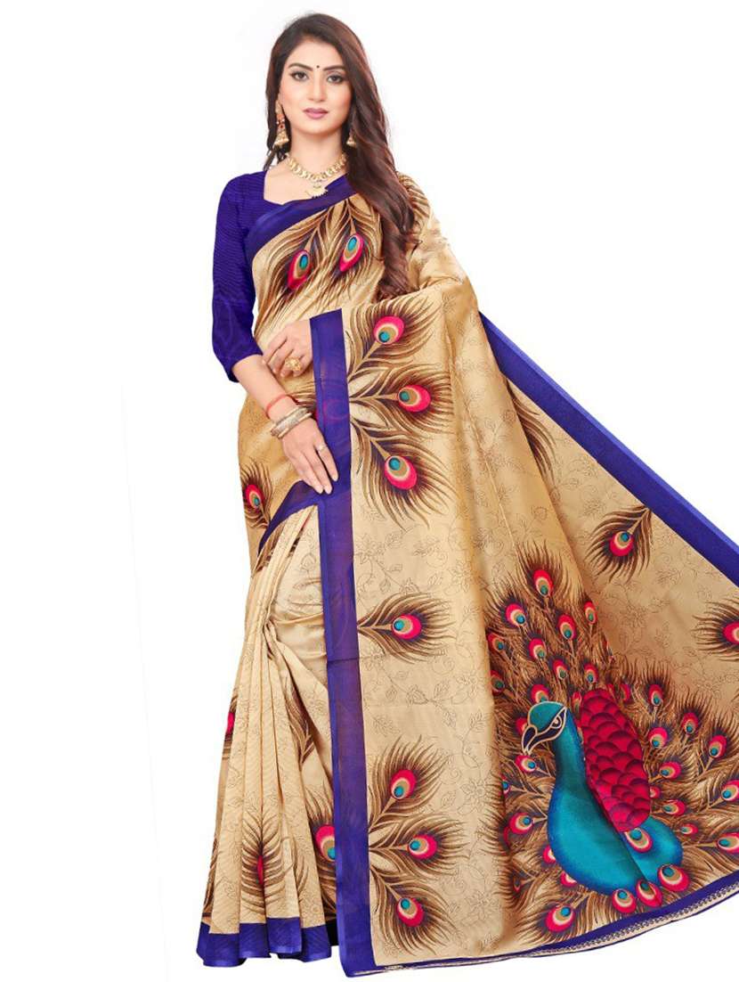 - » women's quirky beige colored saree with blouse