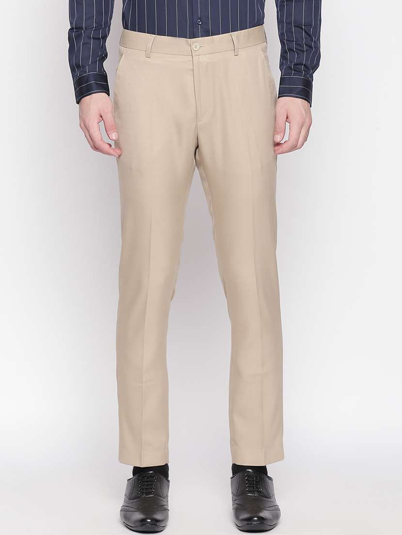 - » beige solid flat front formal trouser