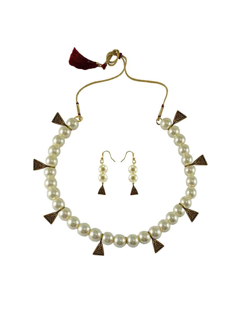 beige pearl brass necklaces with earring