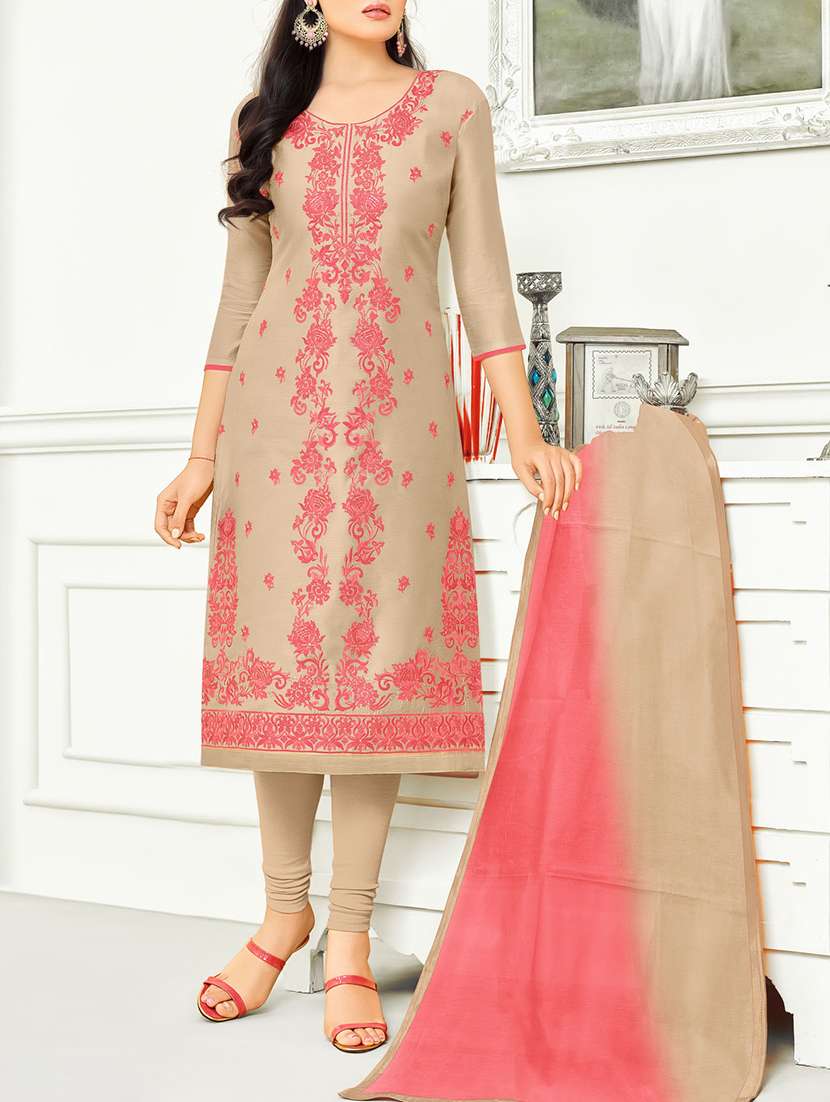 - Look ultra gorgeous in unstitched suits from Rajnandini and grab these beautiful suits in beige colour.
