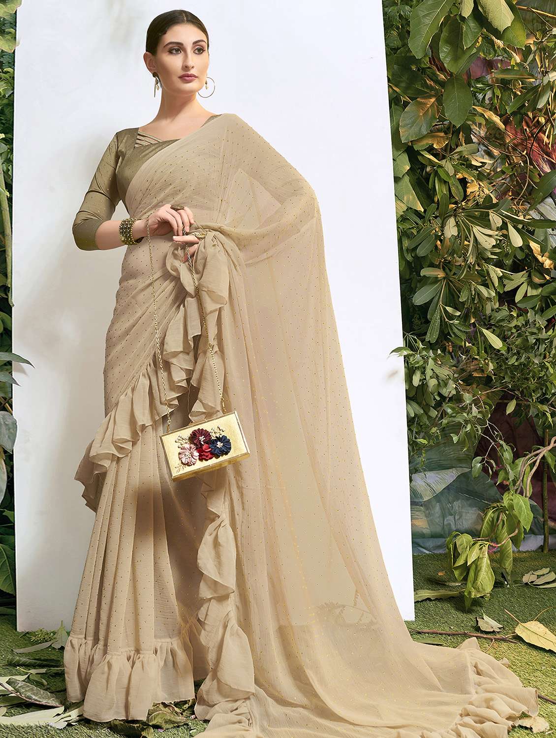 ruffle fusion saree with blouse