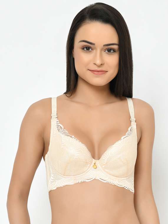 this bra has highly padded cups for fine shaping & nipple coverage , underwired for support and shaping full coverage for enhanced support and no spillage. the broad the back band ensures no seams showing at back as well. the fabric used is 70% Polyester 30% Cotton