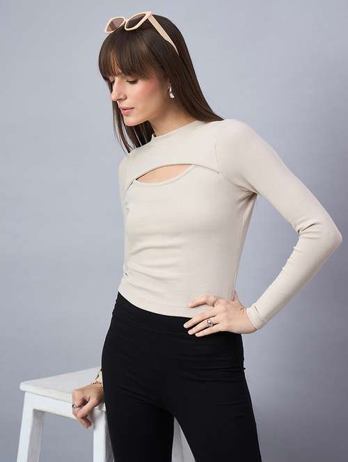 - » women solid long sleeve cut out crop top