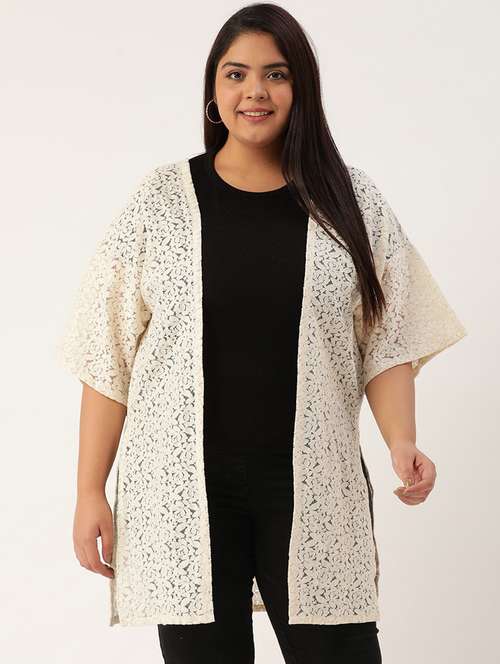 women self design three quarter sleeve shrugs