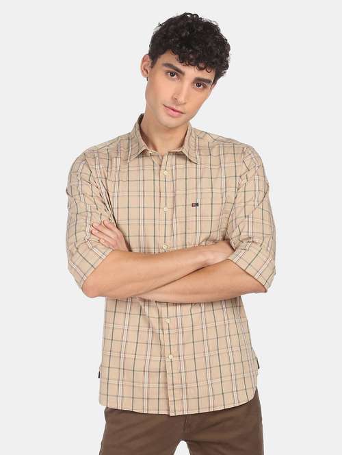 beige checkered casual shirt