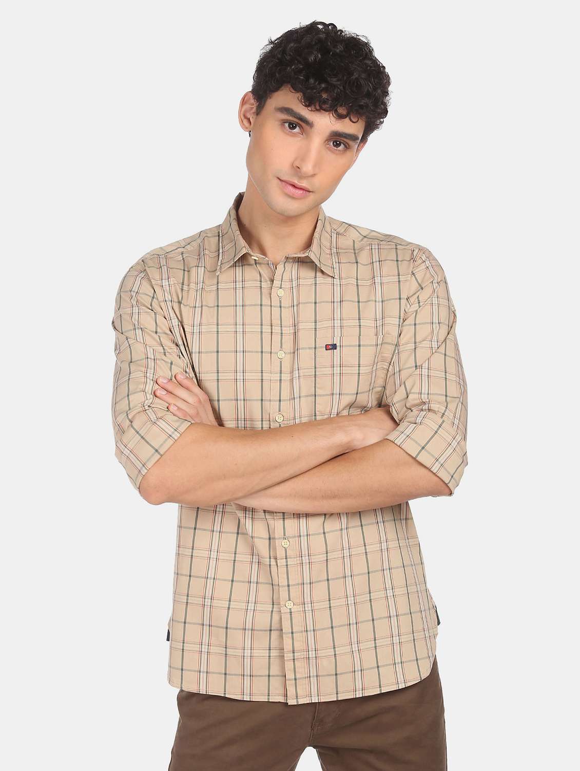 - » beige checkered casual shirt
