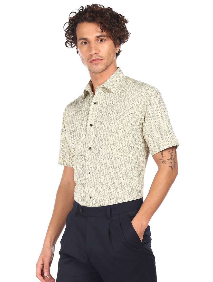 beige printed formal shirt - 17982223 - Very Small Image - 1