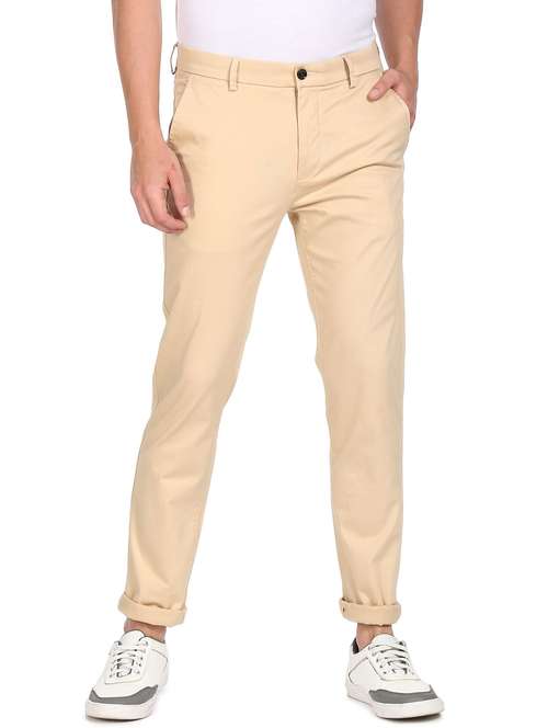 - » beige cotton flat front casual trousers