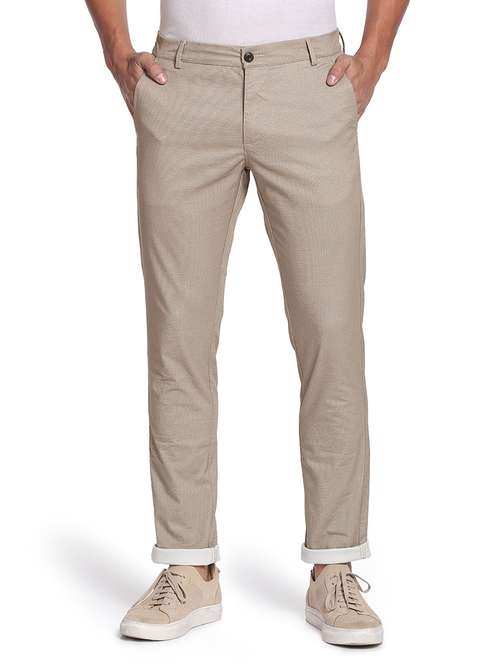 - » beige solid flat front casual trouser
