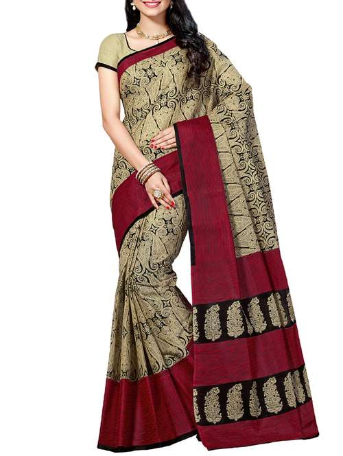 contrast pallu kalamkari printed saree with blouse - 15368023 - Very Small Image - 1