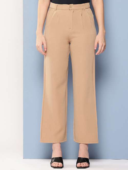 girls solid mid rise straight trouser