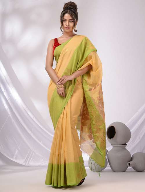 - » women's self design lemon sherbet colored saree with blouse