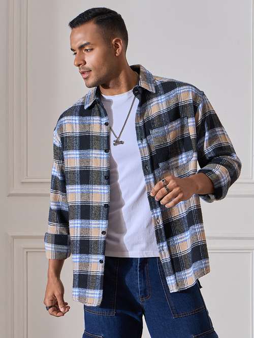 - » men checkered oversized casual shirt